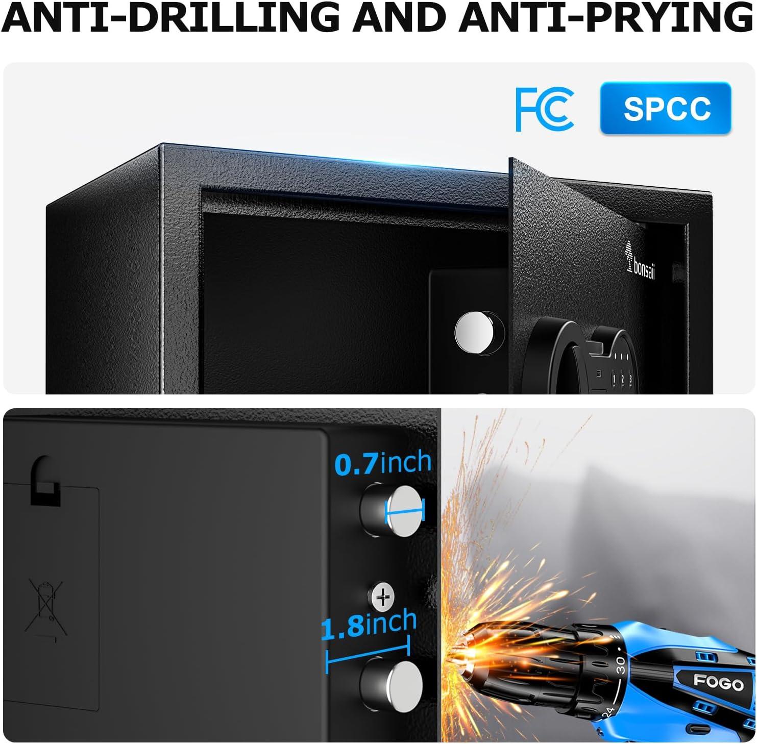 Durable Steel Construction: Bonsaii money safe box is built from durable SPHC steel; Dual thicker live door bolts help protect against forced entry (Bonsaii: 0.71 in / 18 mm; Ohers: <0.60 in / 15.2 mm)